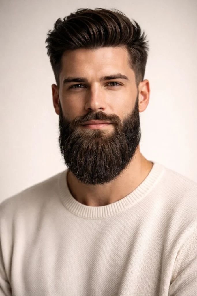 It suits almost every face shape, making it a go-to recommendation in any beard style guide. If you’re new to growing a beard or unsure what to commit to, this is your safest and most stylish starting point.