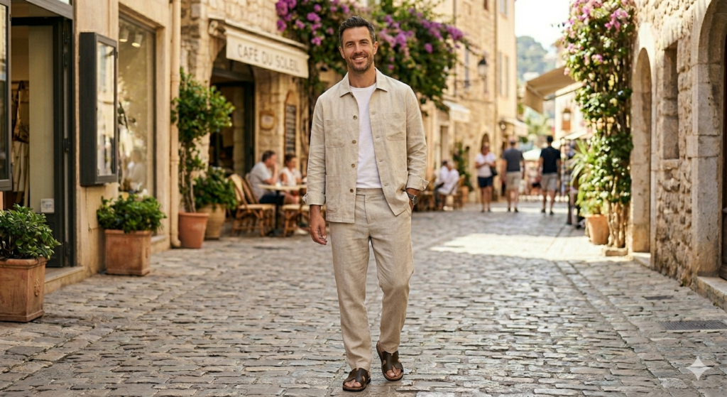 Linen is arguably the most underrated fabric in men’s fashion. It breathes better than cotton, looks more elevated than a basic tee, and has a relaxed, lived-in quality that actually gets better throughout the day.