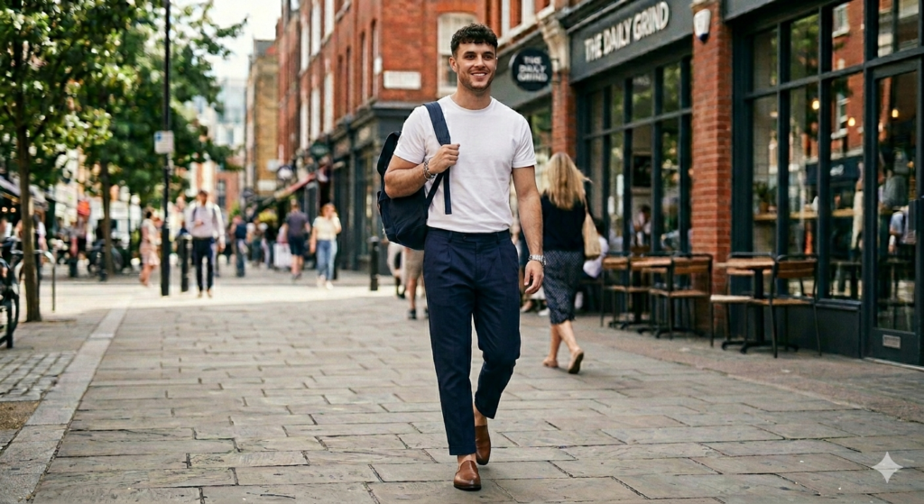 A white t-shirt is the closest thing men’s fashion has to a blank canvas. It doesn’t compete with anything else in your outfit — it supports it. That’s what makes it so powerful. It can sit under a blazer, anchor a monochrome look, go toe-to-toe with tailored trousers, or hold its own as the centerpiece of a summer outfit.